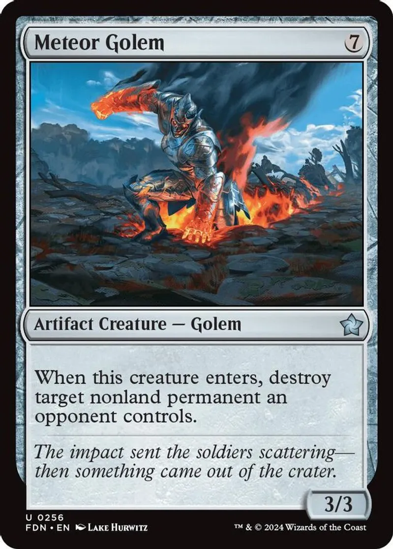 Magic: the Gathering (mtg) Uncommon artifact creature — golem Meteor Golem from Foundations (FDN) last updated 2025-12-13 15:31:03