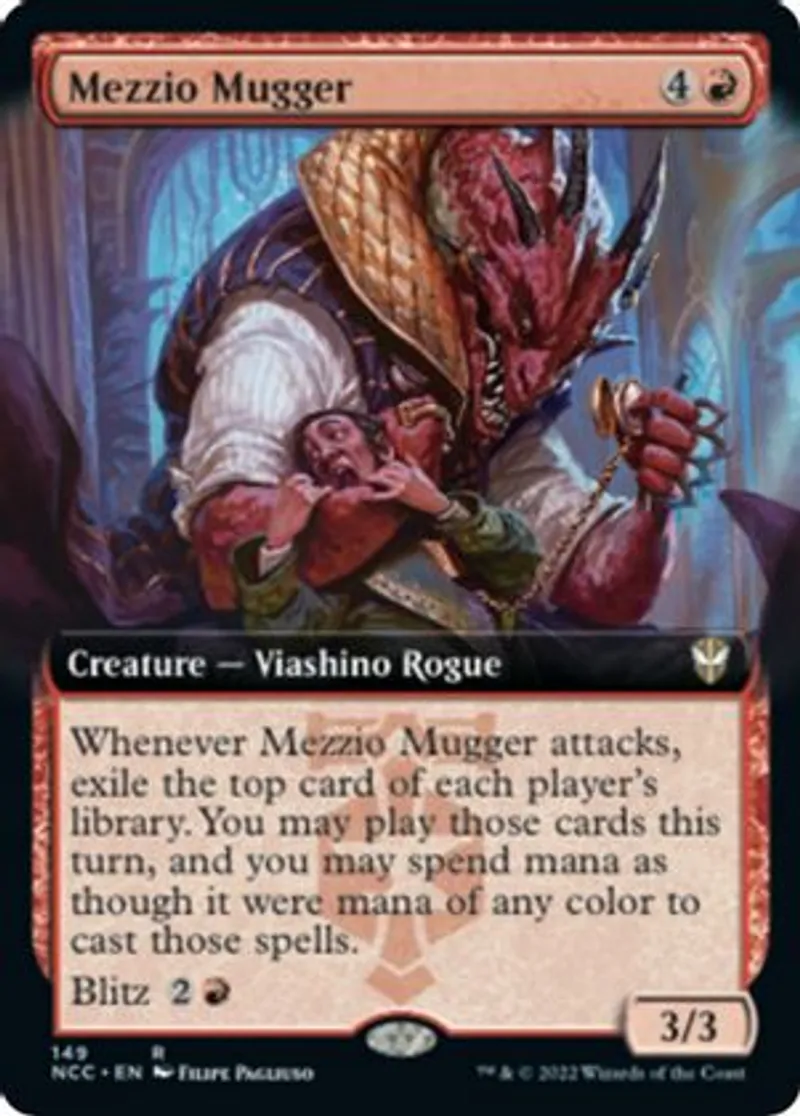 Mezzio Mugger (Extended Art) is a Rare in the set New Capenna Commander.
