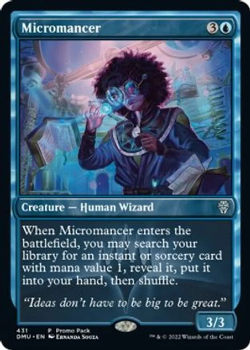 | Oracle Text | When Micromancer enters the battlefield, you may search your library for an instant or sorcery card with mana value 1, reveal it, put it into your hand, then shuffle. | ||