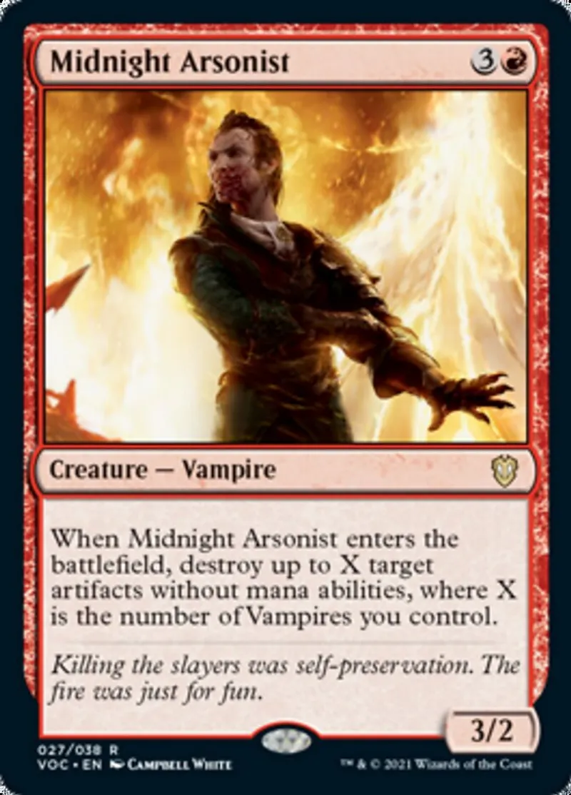 Magic: the Gathering (mtg) rare Creature — Vampire Midnight Arsonist from Crimson Vow Commander (voc) last updated 2026-02-24 15:34:32