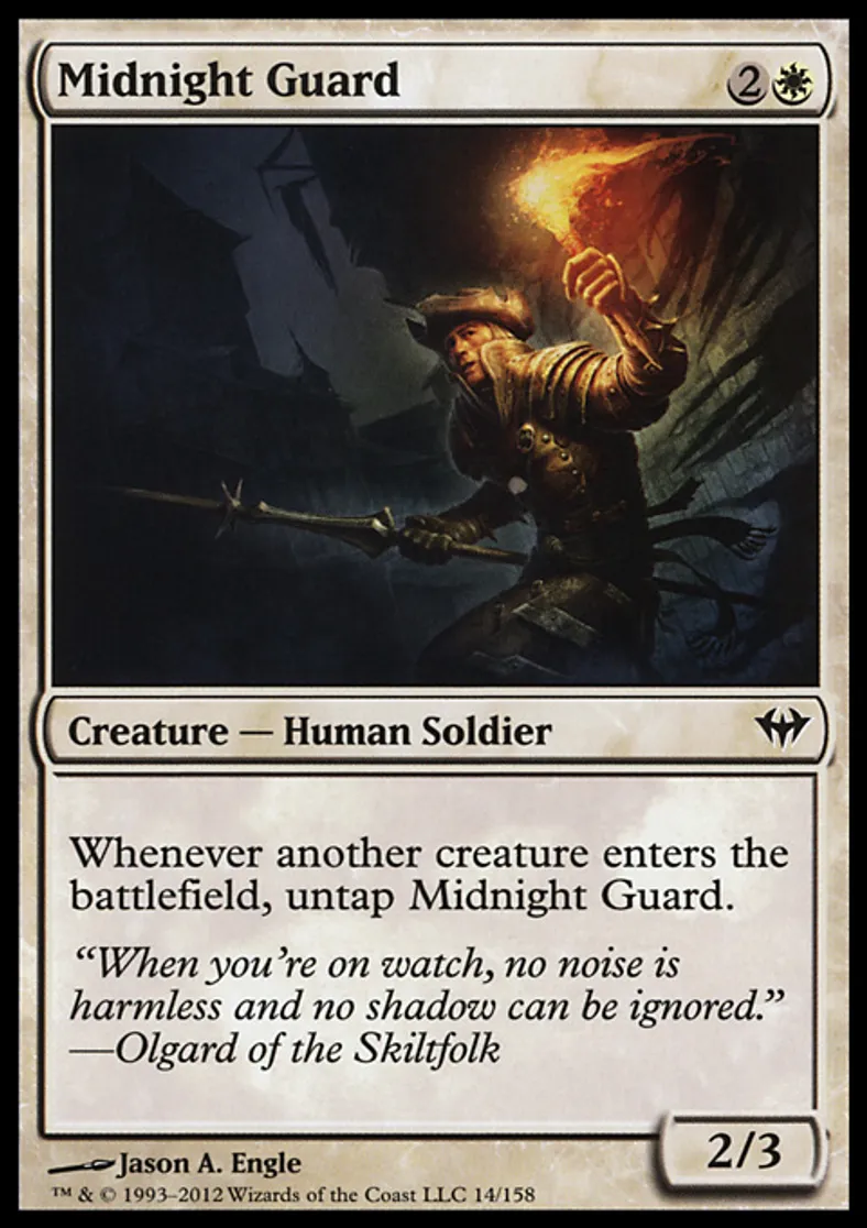 | Oracle Text | Whenever another creature enters the battlefield, untap Midnight Guard. | ||