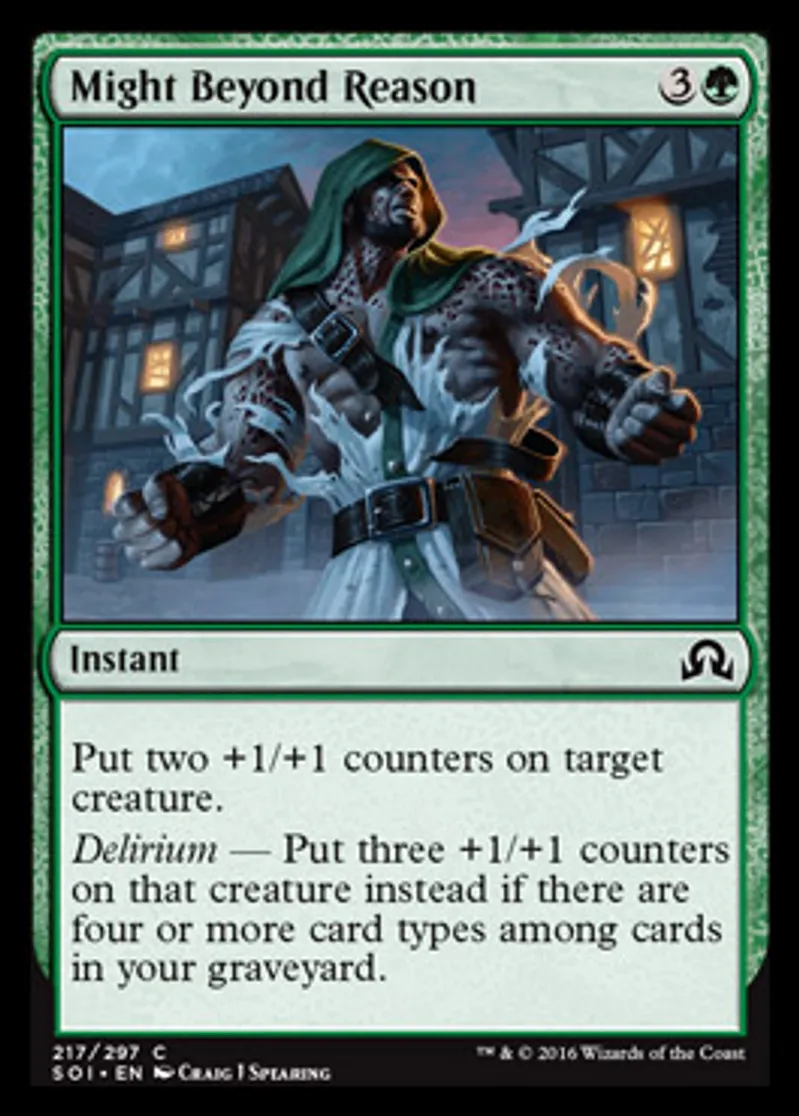 Magic: the Gathering (mtg) Common Instant Might Beyond Reason from Shadows over Innistrad (SOI) last updated 2026-02-21 17:24:02