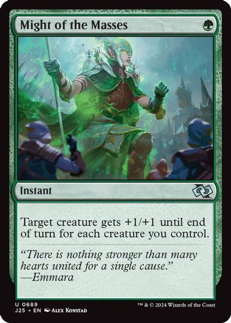 Magic: the Gathering (mtg) Uncommon instant Might of the Masses from Foundations Jumpstart (J25) last updated 2026-02-21 15:34:02