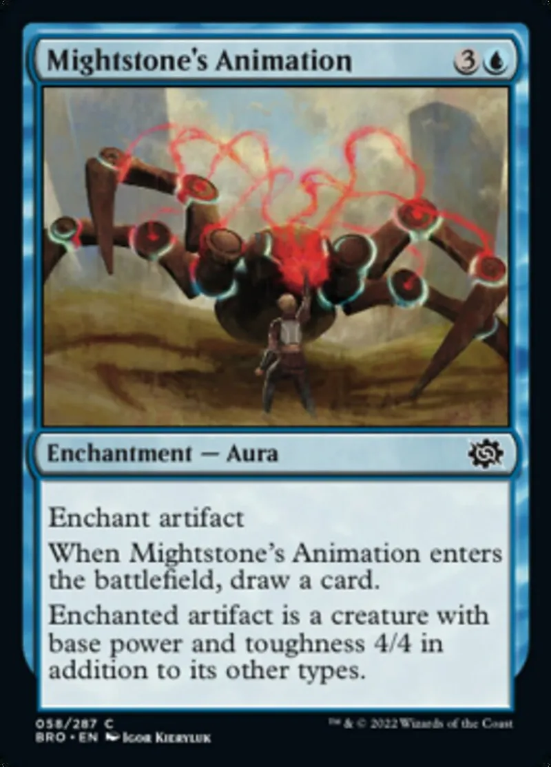 Magic: the Gathering (mtg) common Enchantment — Aura Mightstone's Animation from The Brothers' War (bro) last updated 2026-02-21 16:15:06