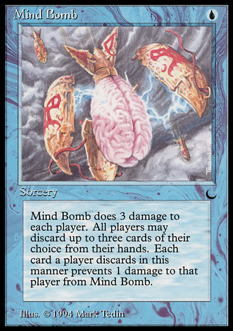 | Oracle Text | Each player may discard up to three cards. Mind Bomb deals damage to each player equal to 3 minus the number of cards he or she discarded this way. | ||