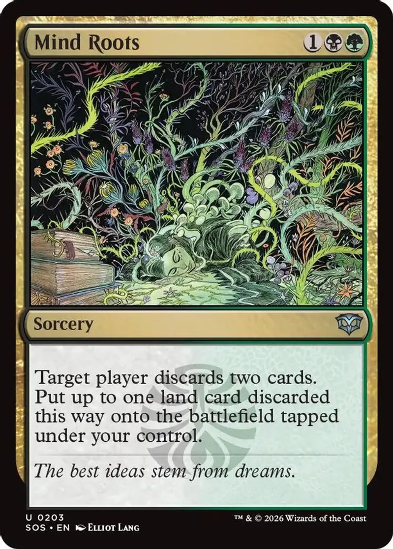Magic: the Gathering (mtg) Uncommon sorcery Mind Roots from Secrets of Strixhaven (SOS) last updated 2026-04-16 23:17:36