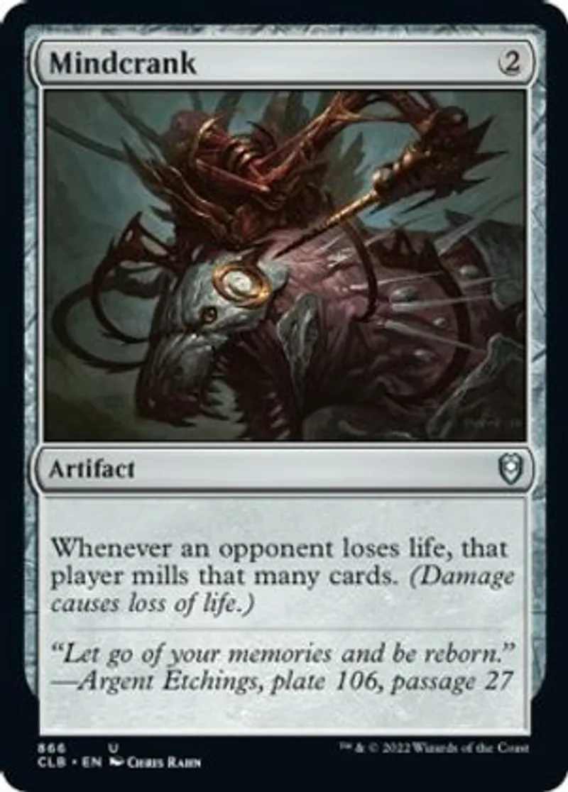 Magic: the Gathering (mtg) Uncommon Artifact Mindcrank from Commander Legends: Battle for Baldur's Gate (CLB) last updated 2026-02-24 14:17:06