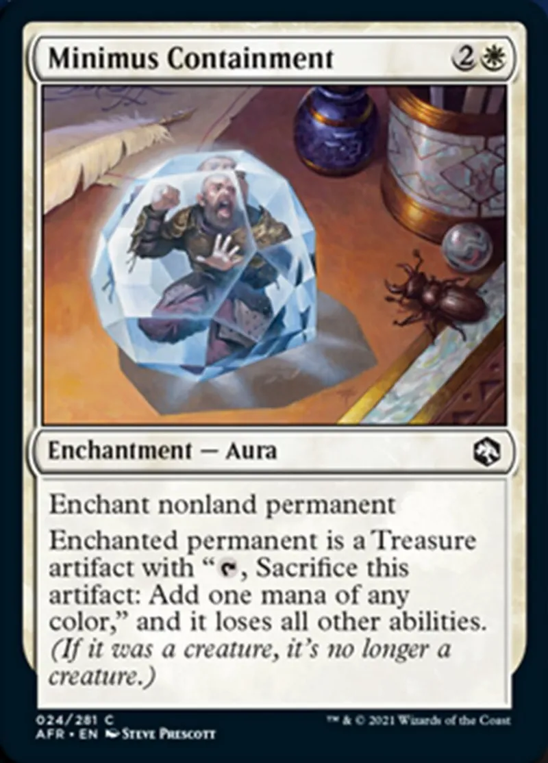 Magic: the Gathering (mtg) common Enchantment — Aura Minimus Containment from Adventures in the Forgotten Realms (afr) last updated 2026-02-21 16:39:32