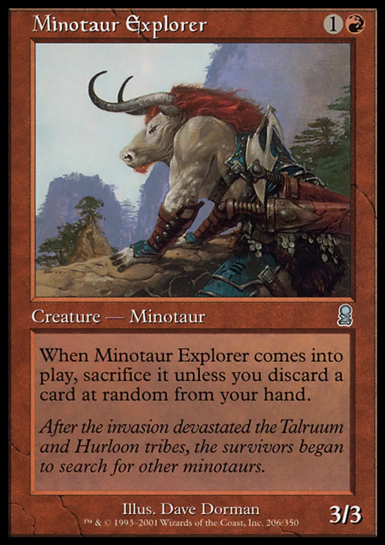 | Oracle Text | When Minotaur Explorer enters the battlefield, sacrifice it unless you discard a card at random. | ||