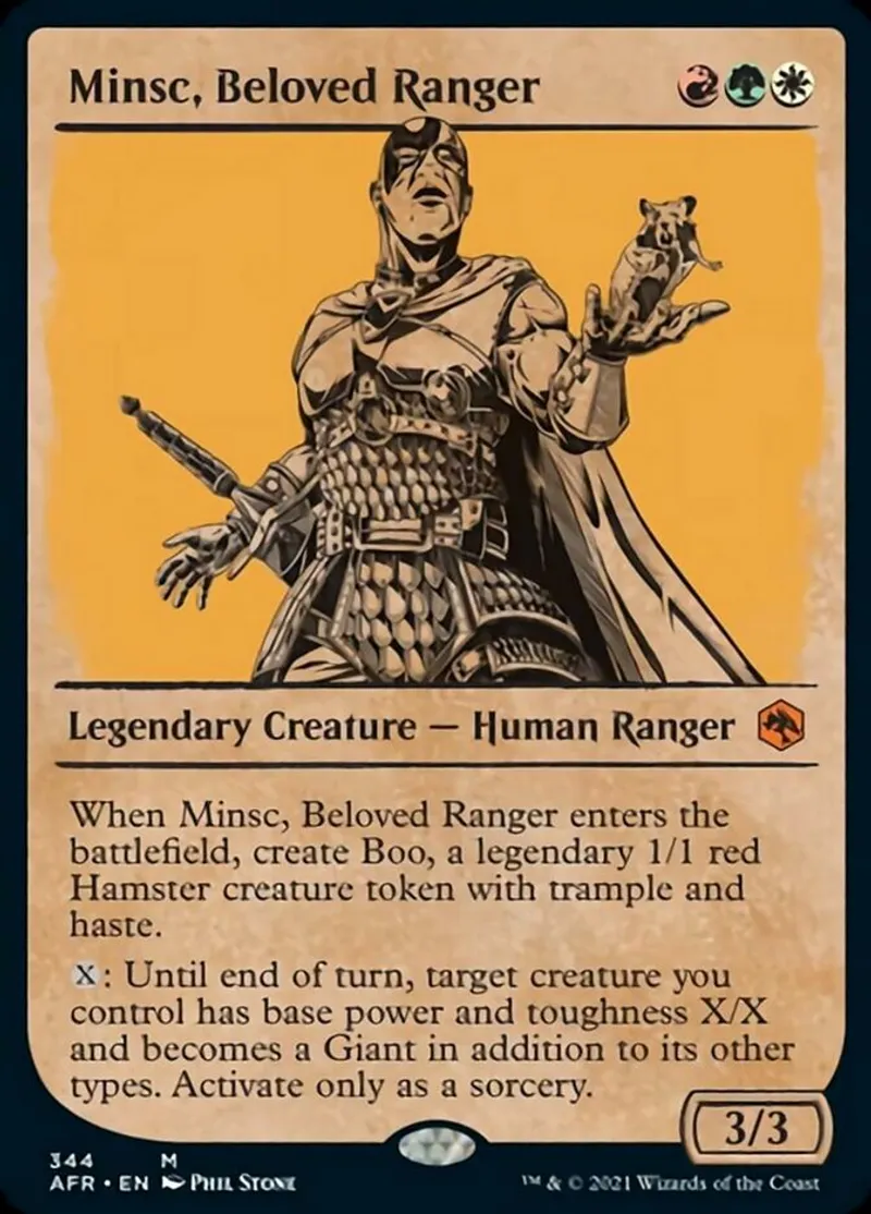 | Oracle Text | When Minsc, Beloved Ranger enters the battlefield, create Boo, a legendary 1/1 red Hamster creature token with trample and haste.