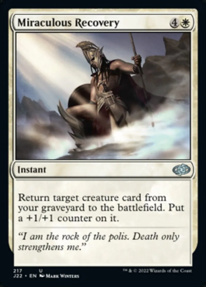 Magic: the Gathering (mtg) uncommon Instant Miraculous Recovery from Jumpstart 2022 (j22) last updated 2026-02-21 16:17:02