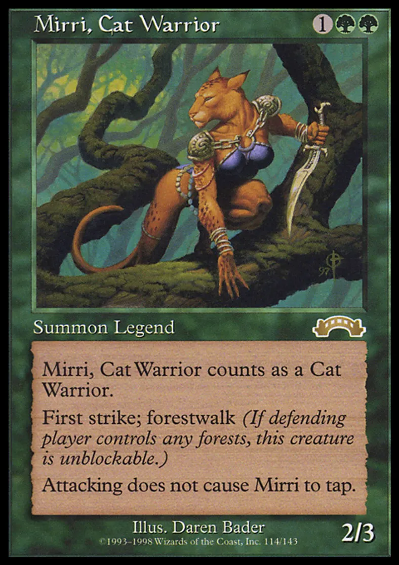 Magic: the Gathering (mtg) Rare Legendary Creature - Cat Warrior Mirri, Cat Warrior from Exodus (EXO) last updated 2026-02-24 15:07:03