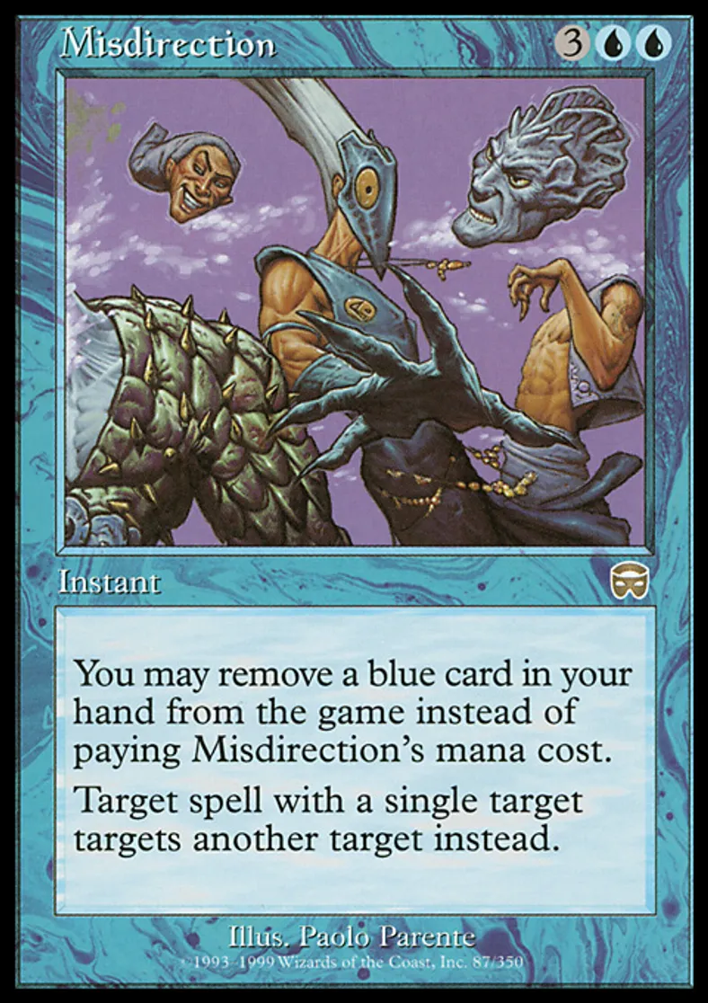| Oracle Text | You may exile a blue card from your hand rather than pay Misdirection's mana cost. Change the target of target spell with a single target. | ||