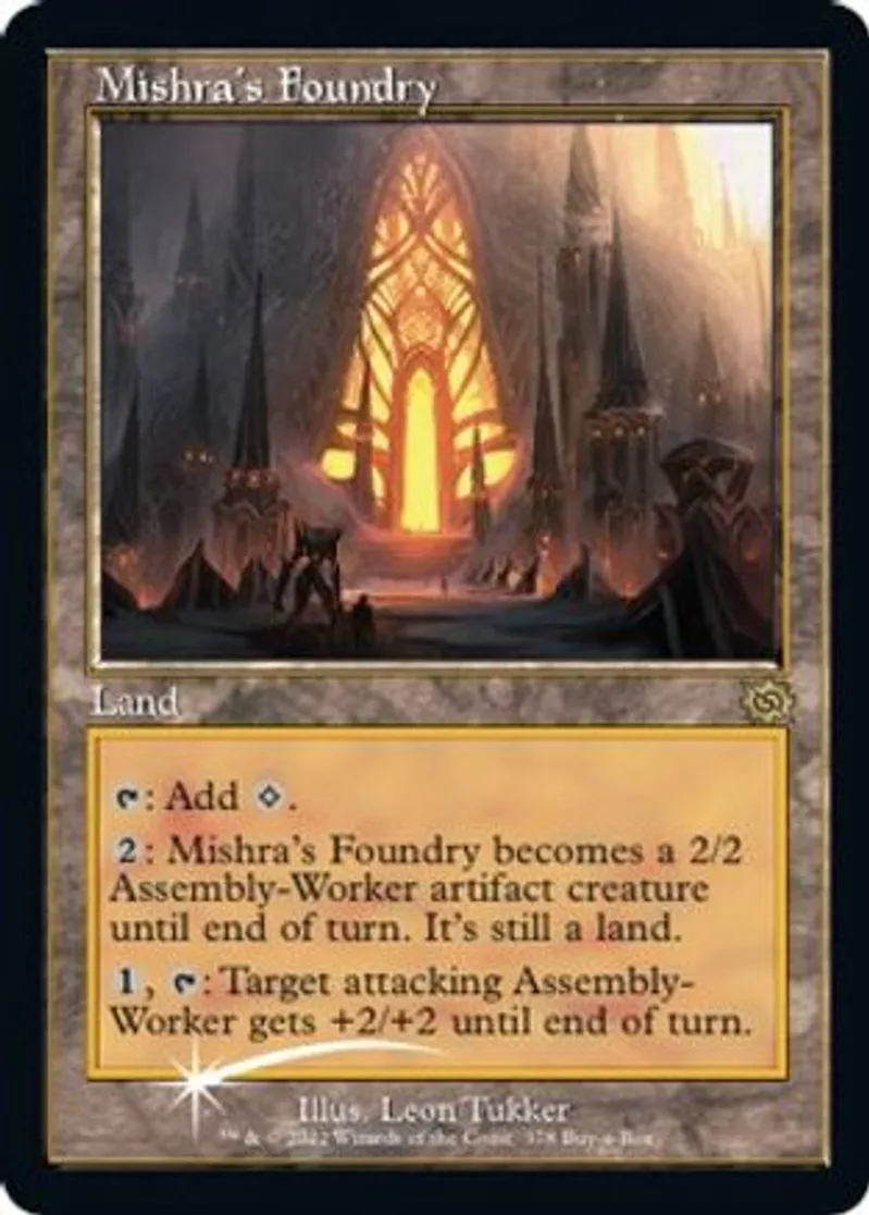 {{2}}: Mishra's Foundry becomes a 2/2 Assembly-Worker artifact creature until end of turn. It's still a land.