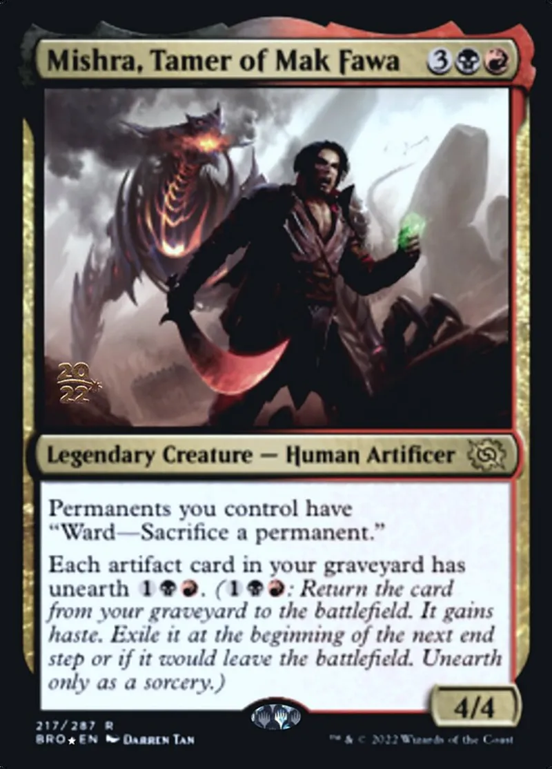Magic: the Gathering (mtg) Rare Legendary Creature — Human Artificer Mishra, Tamer of Mak Fawa from Prerelease Cards (pPRE) last updated 2026-02-21 16:16:32