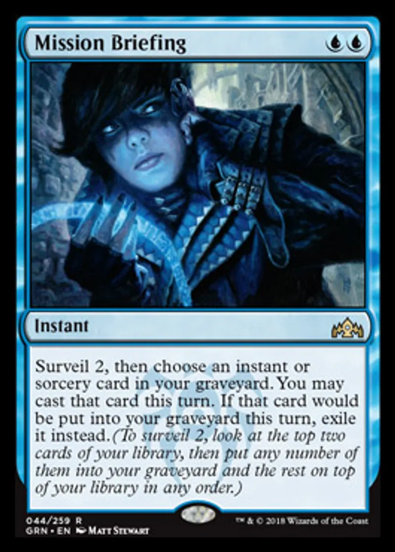 Magic: the Gathering (mtg) Rare Instant Mission Briefing from Guilds of Ravnica (GRN) last updated 2026-02-21 16:54:37