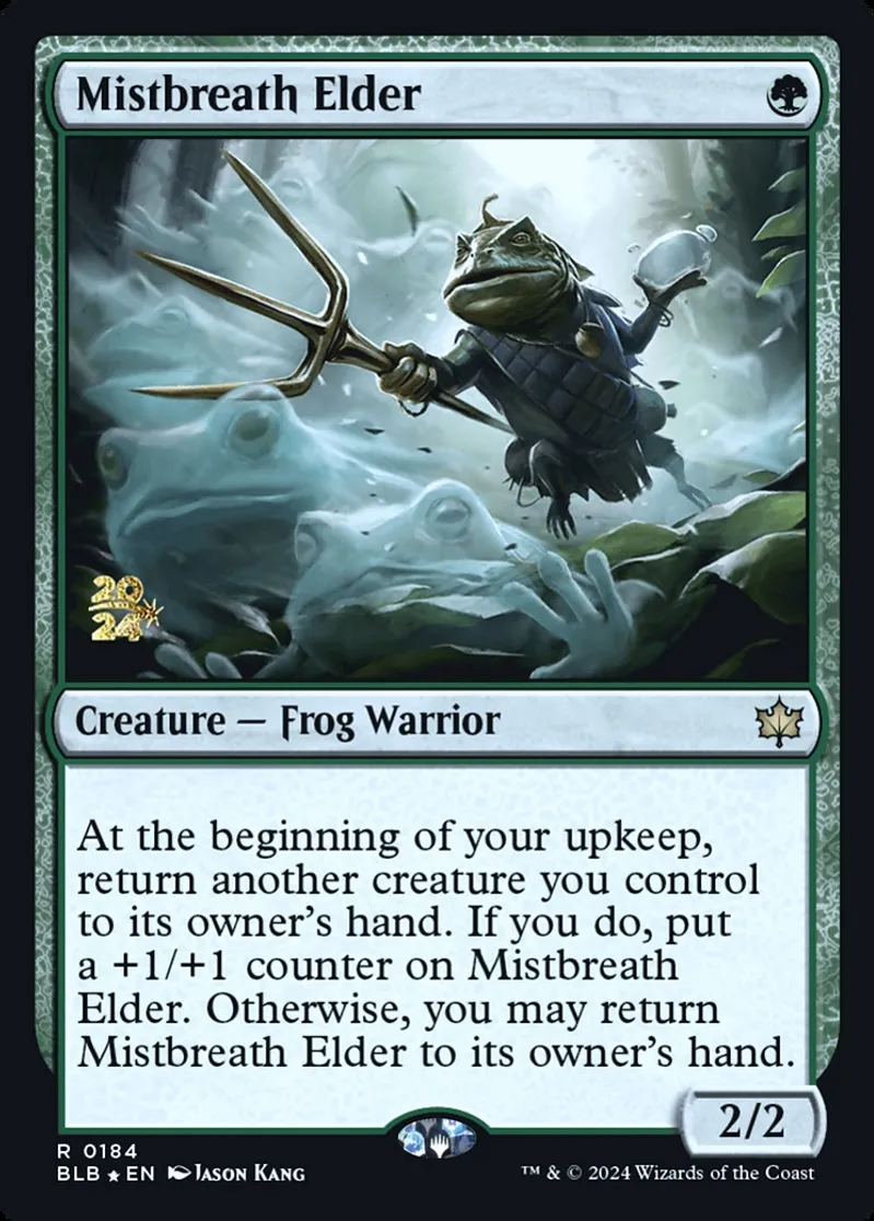 Magic: the Gathering (mtg) Rare Creature — Frog Warrior Mistbreath Elder from Prerelease Cards (pPRE) last updated 2026-02-21 15:29:36