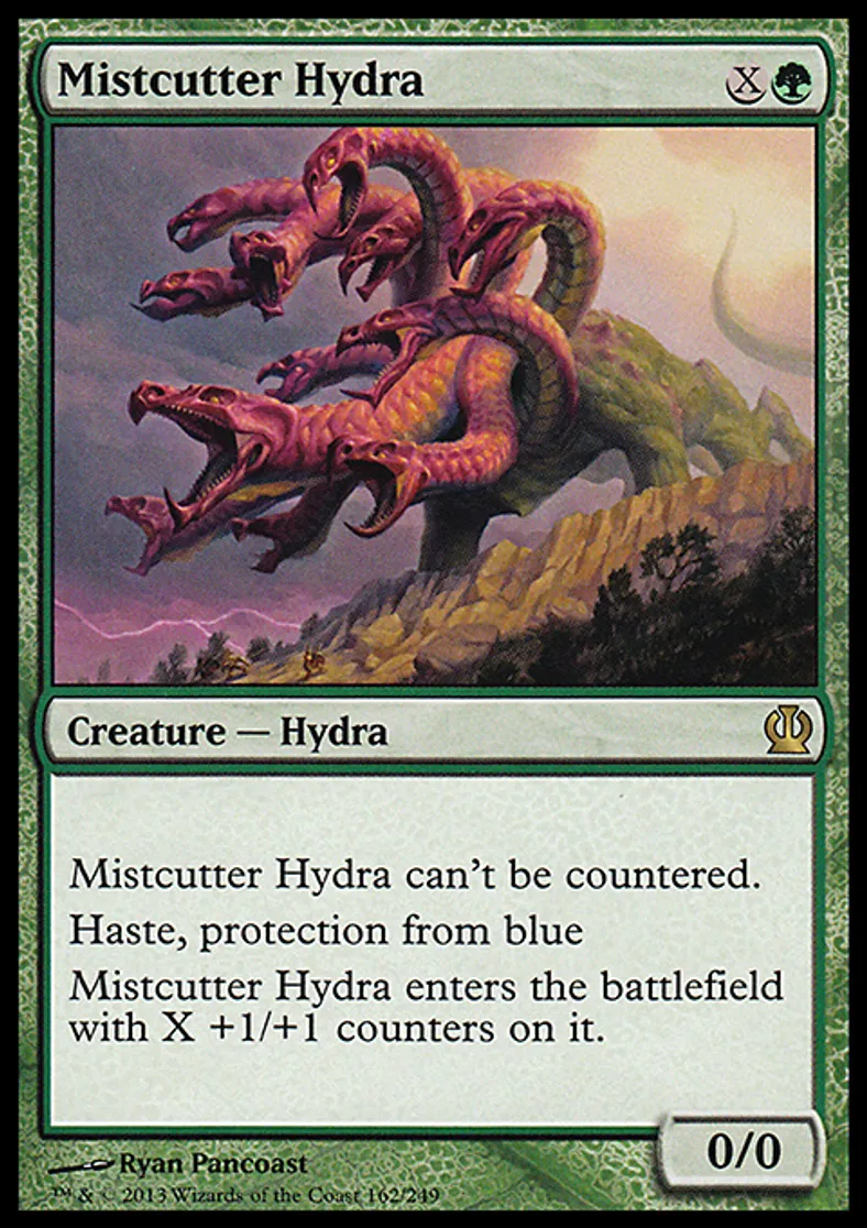 | Oracle Text | Mistcutter Hydra can't be countered. Haste, protection from blue Mistcutter Hydra enters the battlefield with X +1/+1 counters on it. | ||