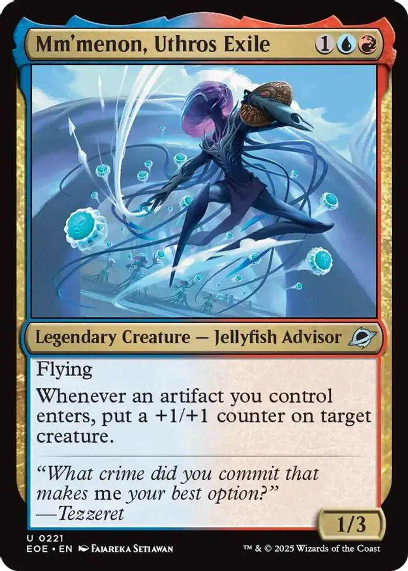 Magic: the Gathering (mtg) Uncommon legendary creature — jellyfish advisor Mm'menon, Uthros Exile from Edge of Eternities (EOE) last updated 2026-02-21 15:12:32