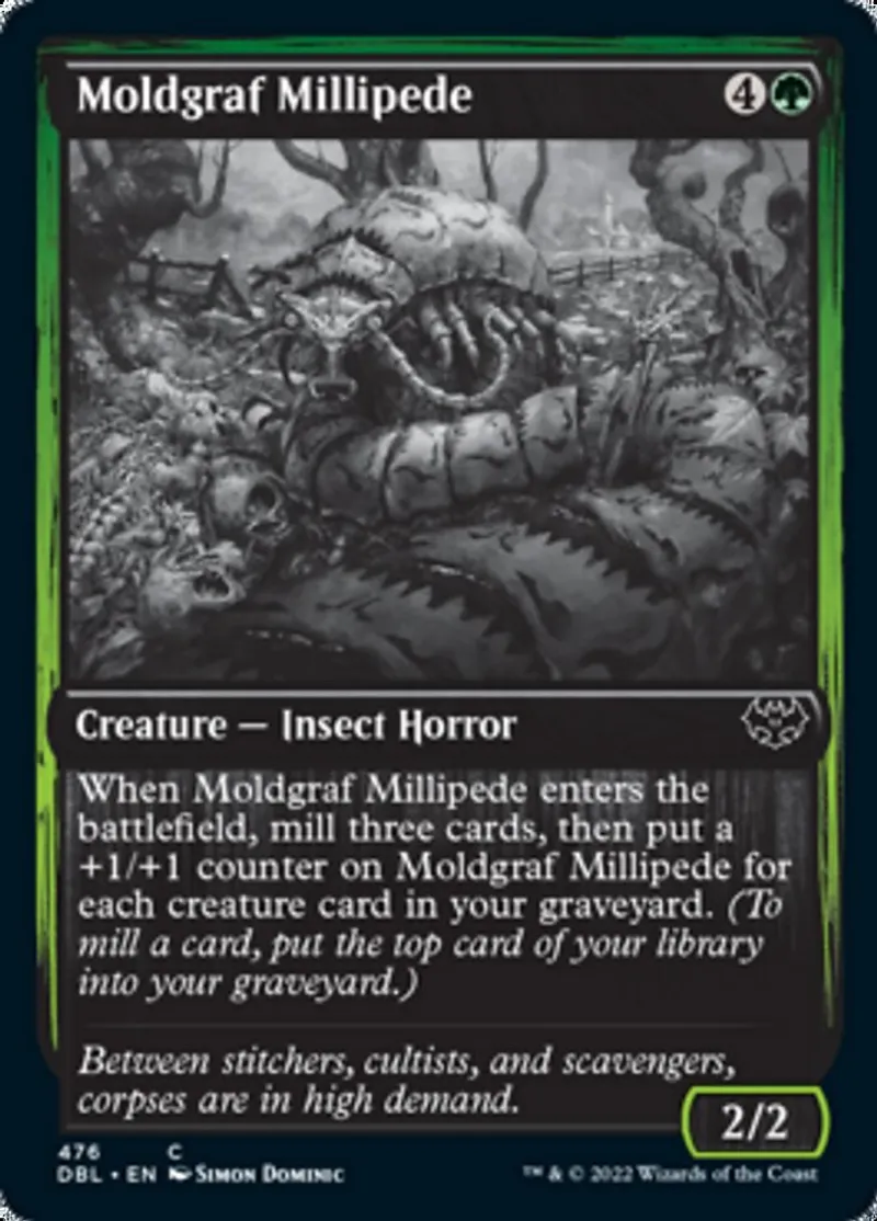 Moldgraf Millipede is a common in the set Innistrad: Double Feature.