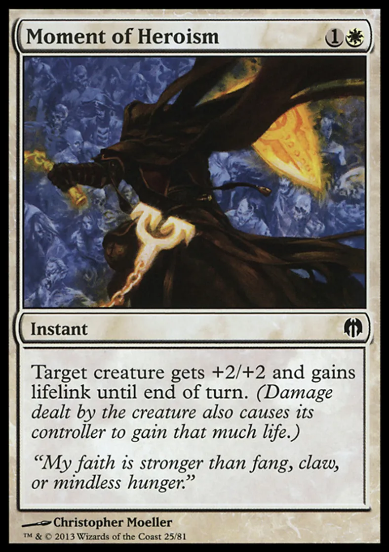 Moment of Heroism is a Common in the set Duel Decks: Heroes vs. Monsters.