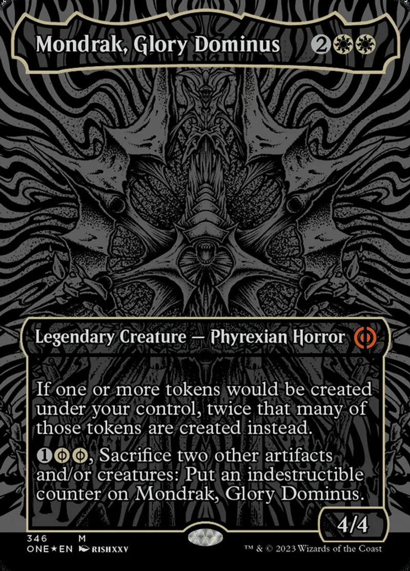 Magic: the Gathering (mtg) Mythic Rare Legendary Creature — Phyrexian Horror Mondrak, Glory Dominus from Phyrexia: All Will Be One (one) last updated 2026-02-08 15:41:02