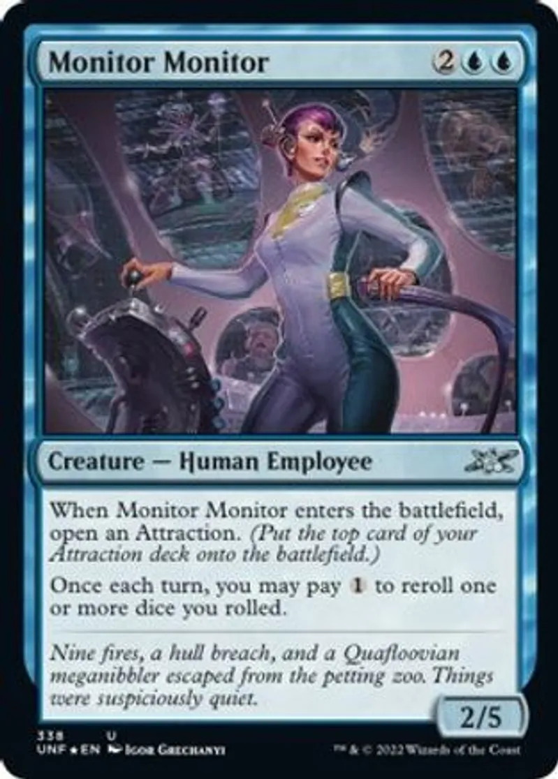 | Oracle Text | When Monitor Monitor enters the battlefield, open an Attraction. (Put the top card of your Attraction deck onto the battlefield.)