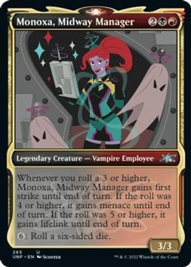 Magic: the Gathering (mtg) Uncommon Legendary Creature — Vampire Employee Monoxa, Midway Manager from Unfinity (UNF) last updated 2026-02-21 16:13:01