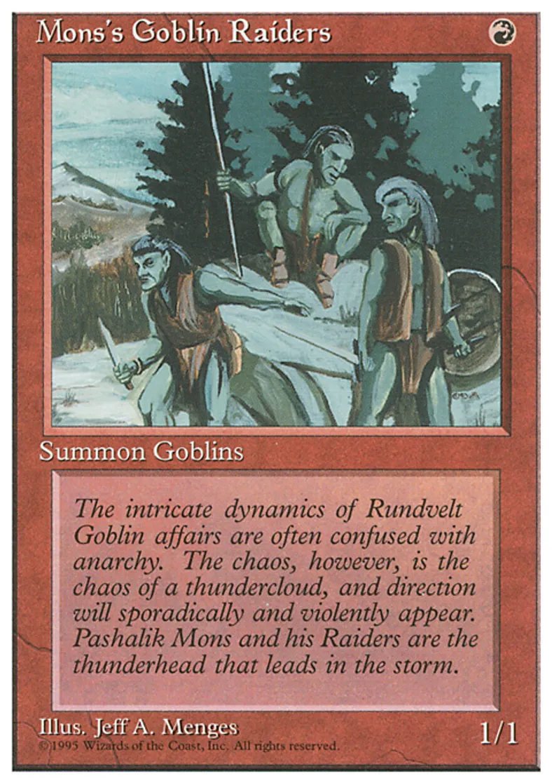 Mons's Goblin Raiders is a Common in the set Fourth Edition.