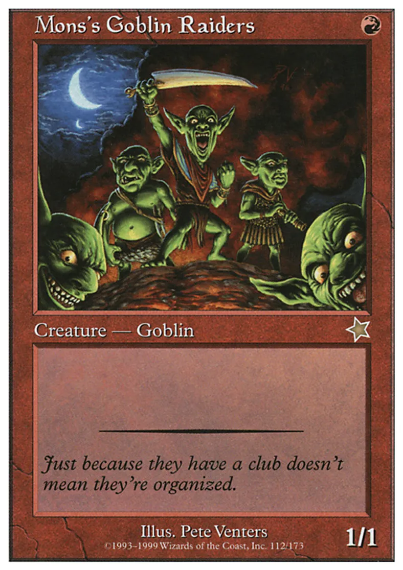 Magic: the Gathering (mtg) Rare Creature - Goblin Mons's Goblin Raiders from Starter 1999 (S99) last updated 2026-02-25 15:50:06