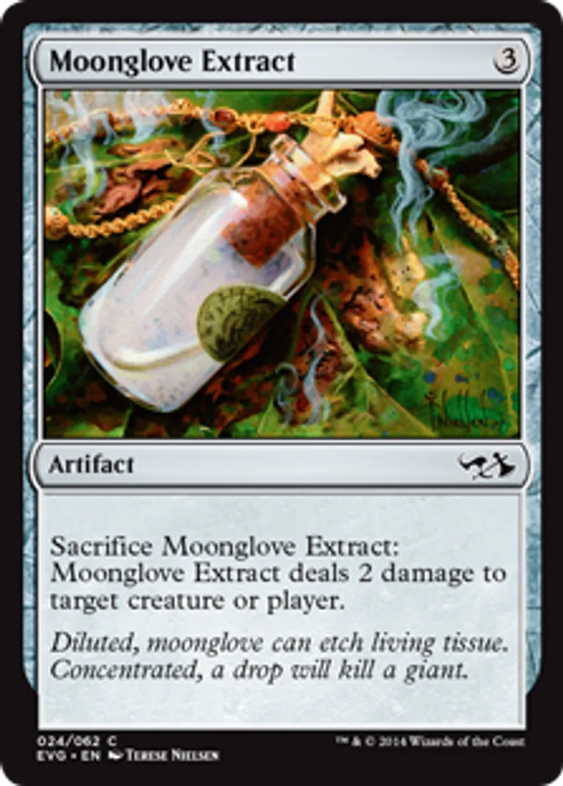 | Oracle Text | Sacrifice Moonglove Extract: Moonglove Extract deals 2 damage to target creature or player. | ||