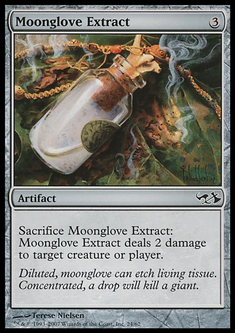 | Oracle Text | Sacrifice Moonglove Extract: Moonglove Extract deals 2 damage to target creature or player. | ||