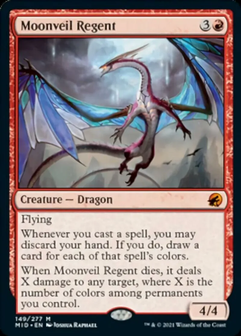 Magic: the Gathering (mtg) mythic Creature — Dragon Moonveil Regent from Innistrad: Midnight Hunt (mid) last updated 2026-02-21 16:41:32