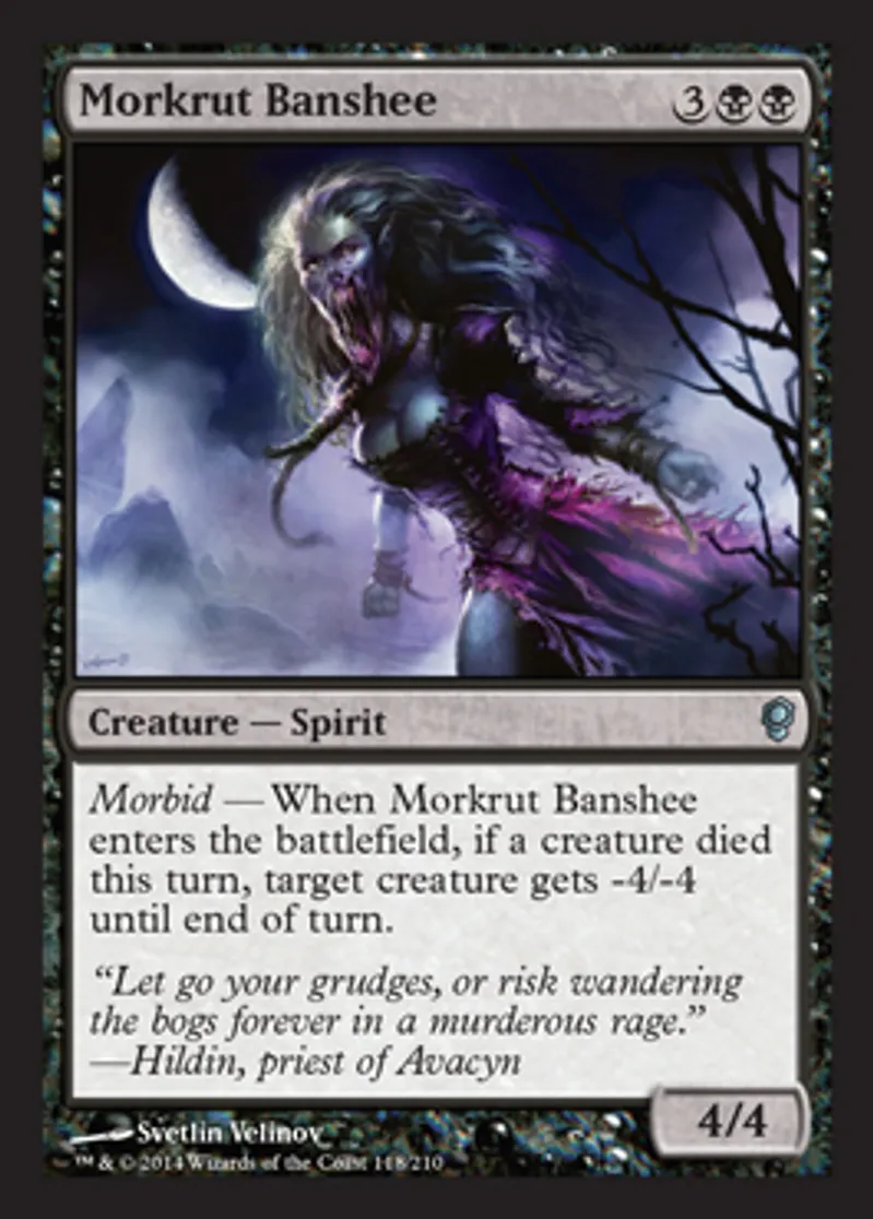 | Oracle Text | Morbid — When Morkrut Banshee enters the battlefield, if a creature died this turn, target creature gets -4/-4 until end of turn. | ||