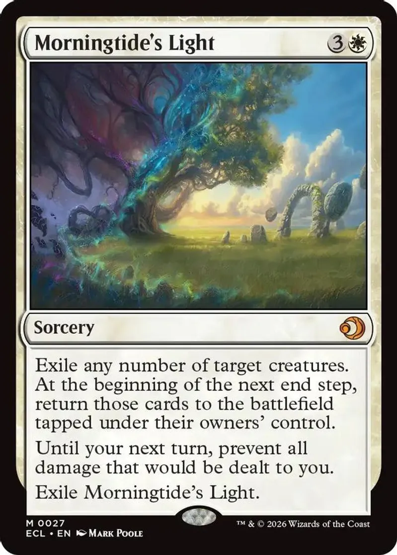 Magic: the Gathering (mtg) Mythic Rare sorcery Morningtide's Light from Lorwyn Eclipsed (ECL) last updated 2026-01-18 16:06:02