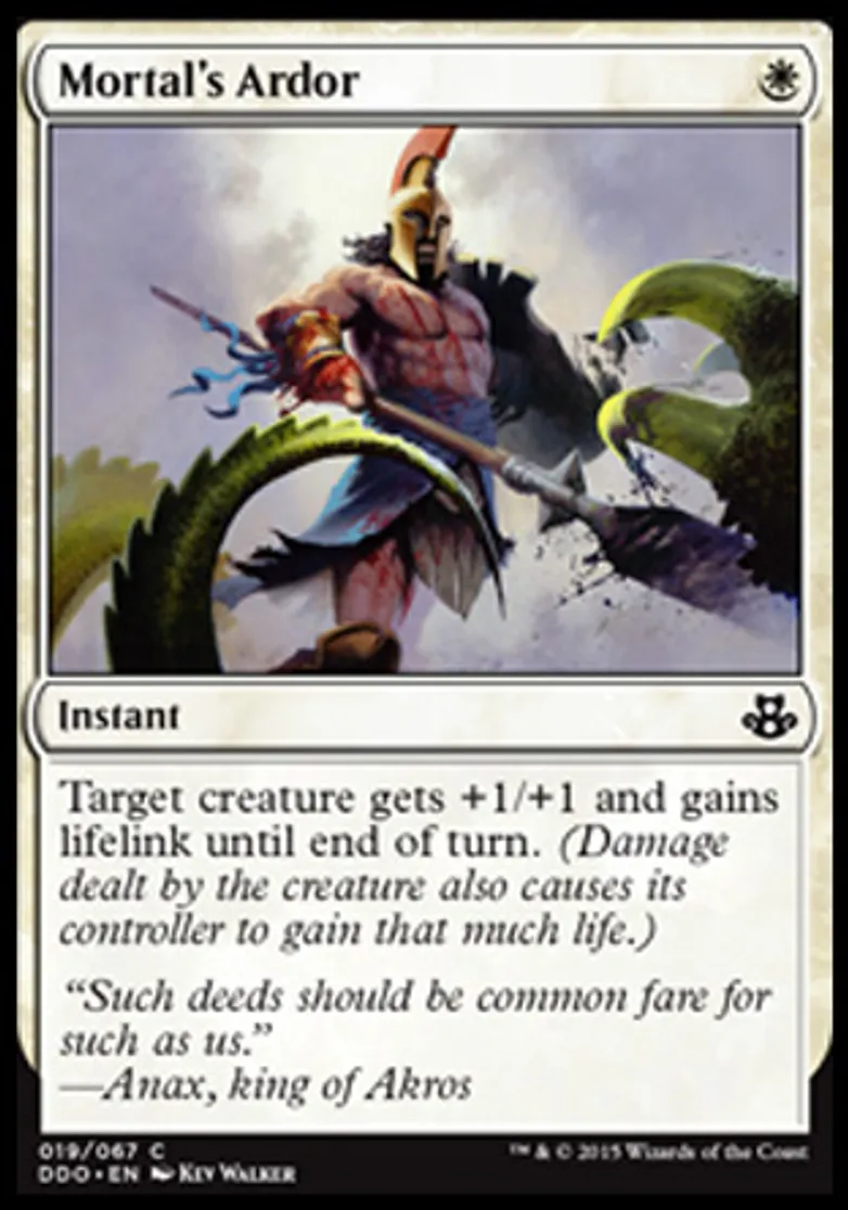 Mortal's Ardor is a Common in the set Duel Decks: Elspeth vs. Kiora.