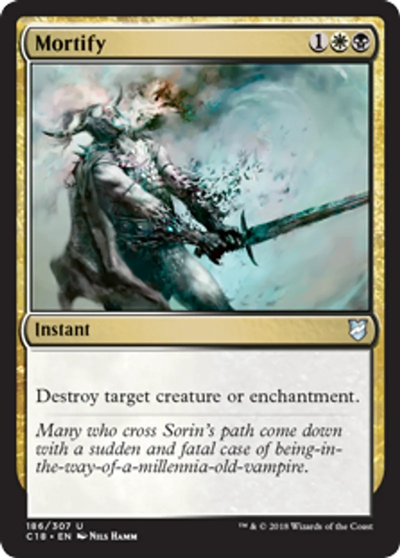Magic: the Gathering (mtg) Uncommon Instant Mortify from Commander 2018 (C18) last updated 2026-02-24 16:06:32