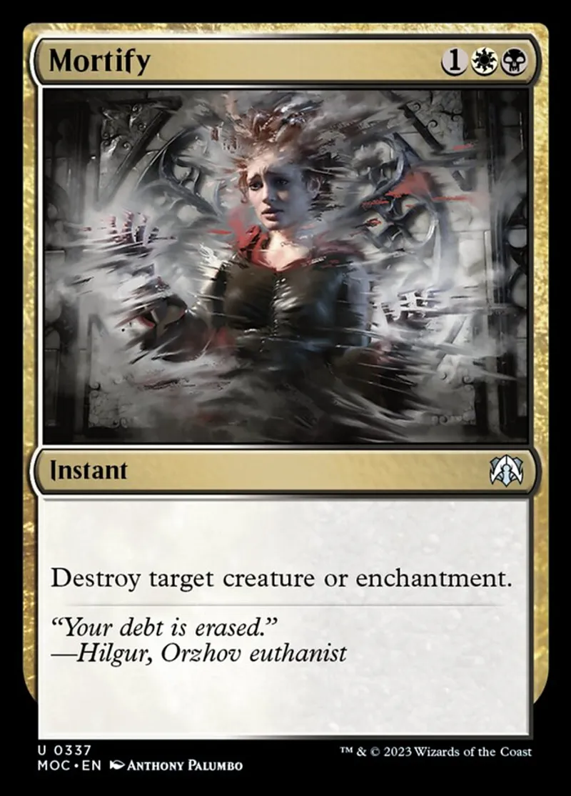 Magic: the Gathering (mtg) uncommon Instant Mortify from March of the Machine Commander (moc) last updated 2026-02-21 15:40:02