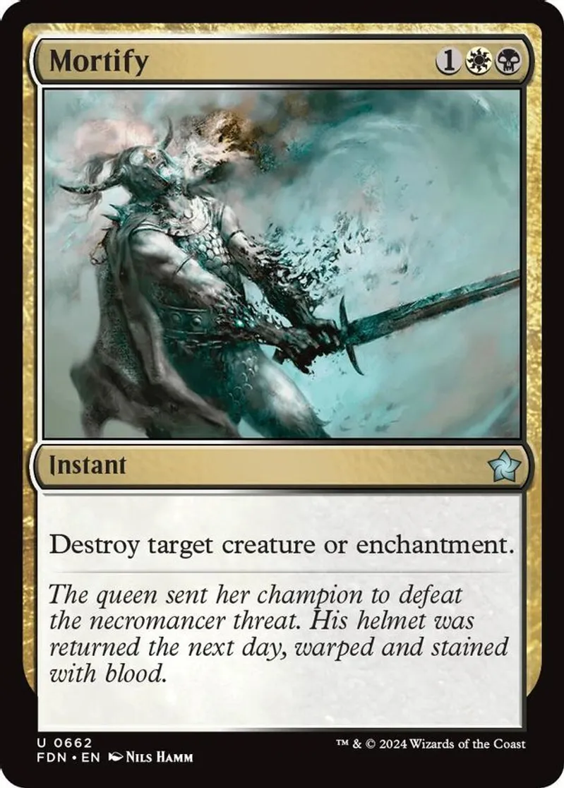 Magic: the Gathering (mtg) Rare instant Mortify from Foundations (FDN) last updated 2025-12-13 15:31:03