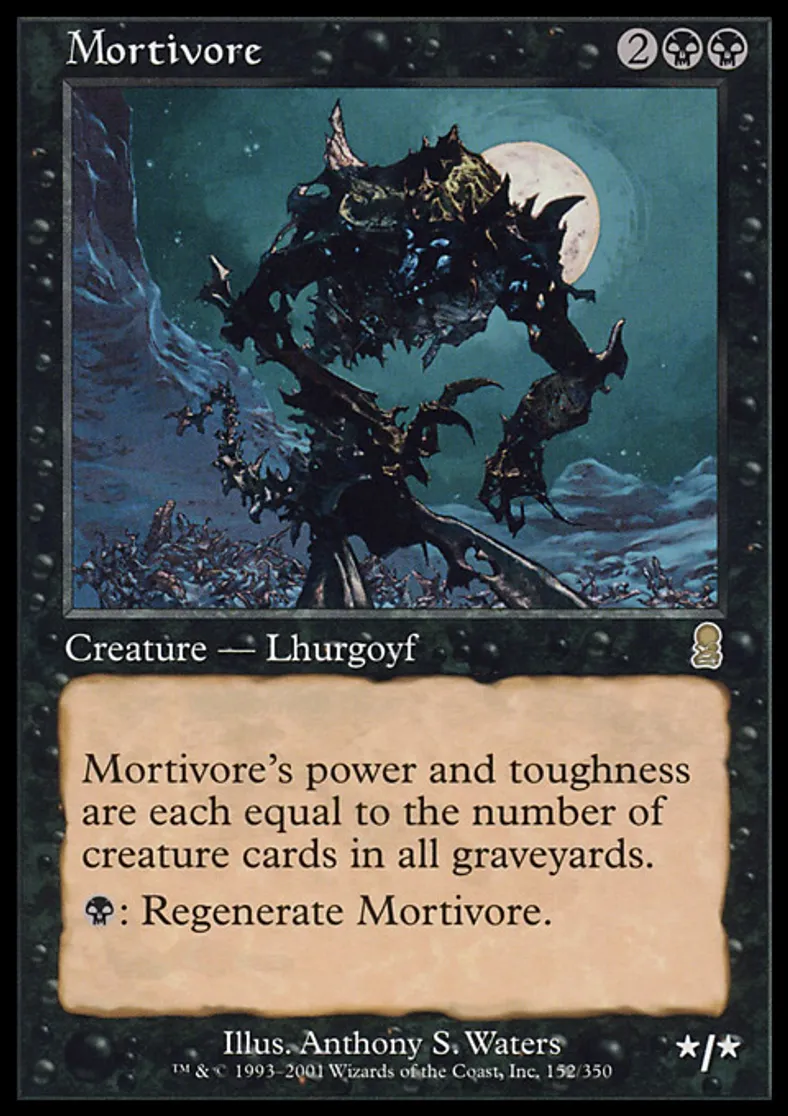 | Oracle Text | Mortivore's power and toughness are each equal to the number of creature cards in all graveyards. {{b}}: Regenerate Mortivore. | ||
