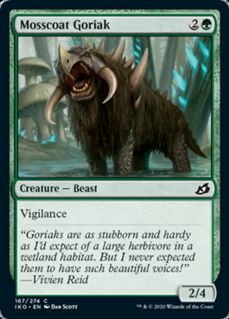 Magic: the Gathering (mtg) common Creature — Beast Mosscoat Goriak from Ikoria: Lair of Behemoths (iko) last updated 2026-02-21 16:24:32