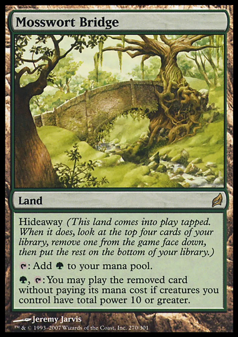 Magic: the Gathering (mtg) Rare Land Mosswort Bridge from Lorwyn (LRW) last updated 2026-04-12 15:10:36