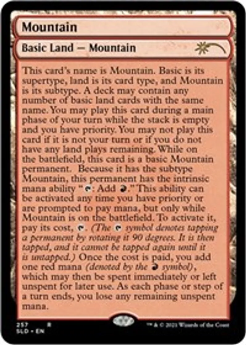 Mountain (257) (Full-Text Lands) is a Rare in the set Secret Lair Drop Series.