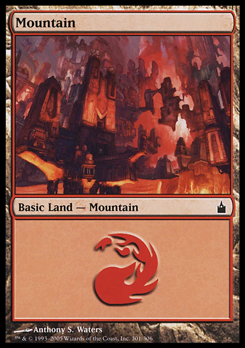 Mountain (301) is a Basic Land in the set Ravnica: City of Guilds.