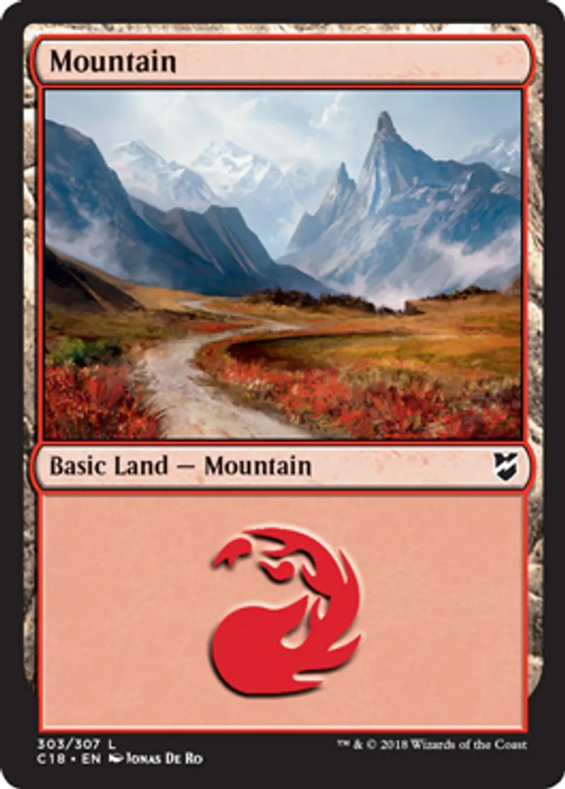 Mountain (303) is a Basic Land in the set Commander 2018.