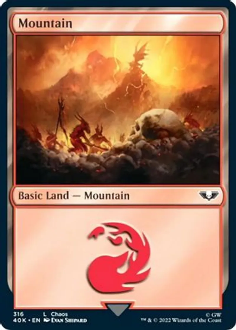 Mountain (316) (Surge Foil) is a Basic Land in the set Warhammer 40,000.