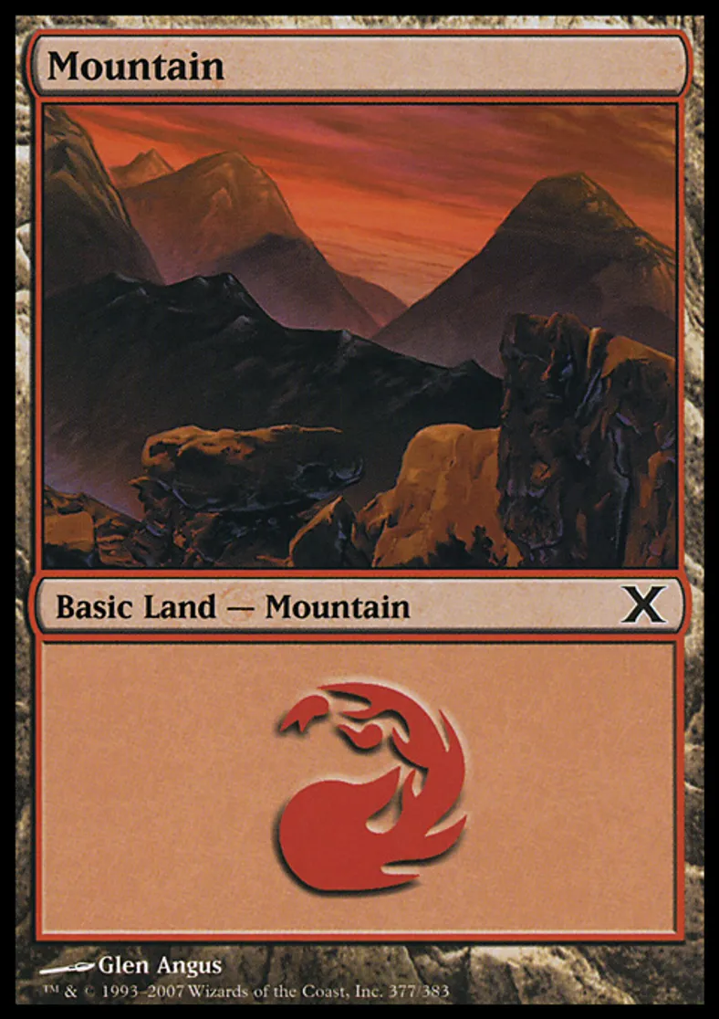 Mountain (377) is a Basic Land in the set Tenth Edition.