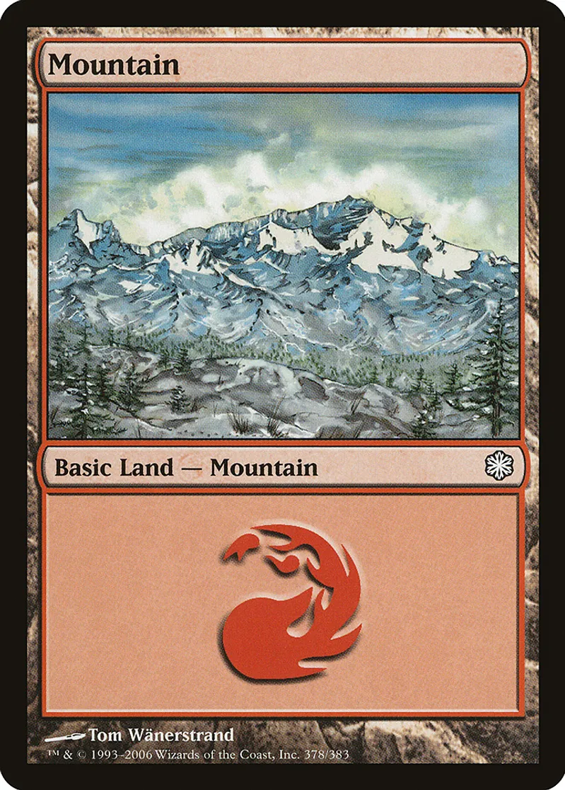 Mountain (378) is a Basic Land in the set Coldsnap Theme Deck Reprints.