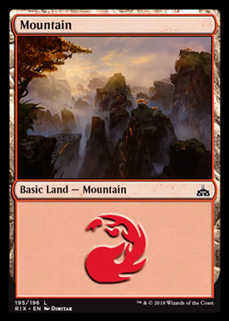 Magic: the Gathering (mtg) Basic Land Basic Land - Mountain Mountain from Rivals of Ixalan (RIX) last updated 2026-02-24 15:00:02