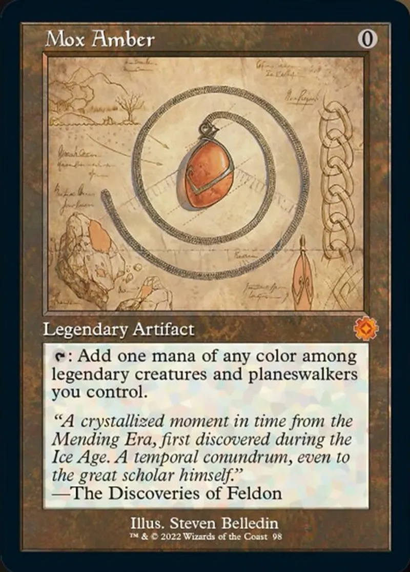 Magic: the Gathering (mtg) Mythic Rare Legendary Artifact Mox Amber from The Brothers' War Retro Artifacts (BRR) last updated 2026-02-07 14:26:02